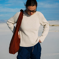 By streamlining the design, this iteration offers made-in-usa, small-batch, natural materials as a more affordable price. Double fold helm rather than bound. No internal pocket. Raw-edge bag ear. Simpler, but just as functional.