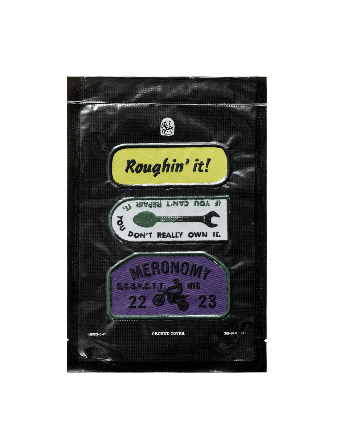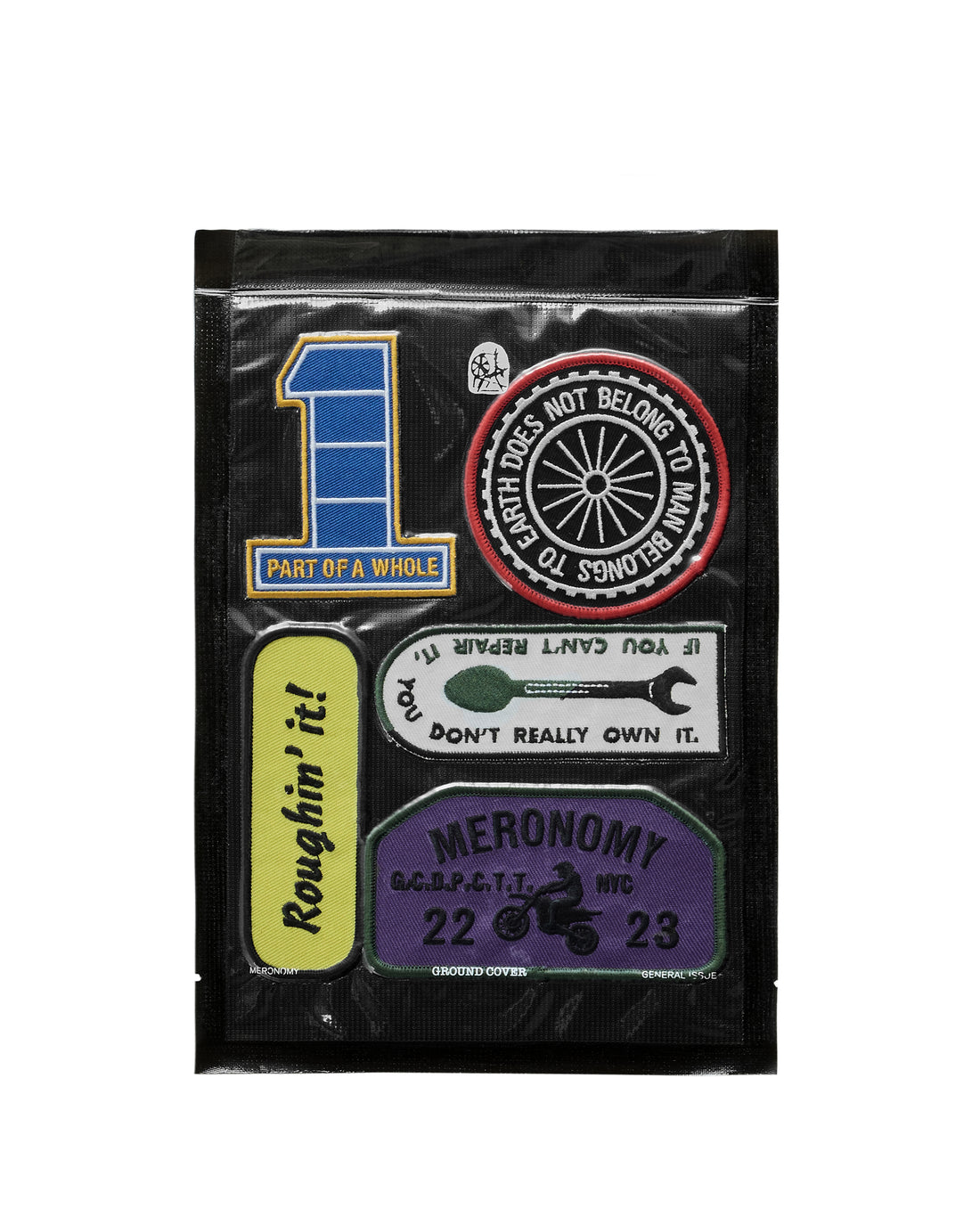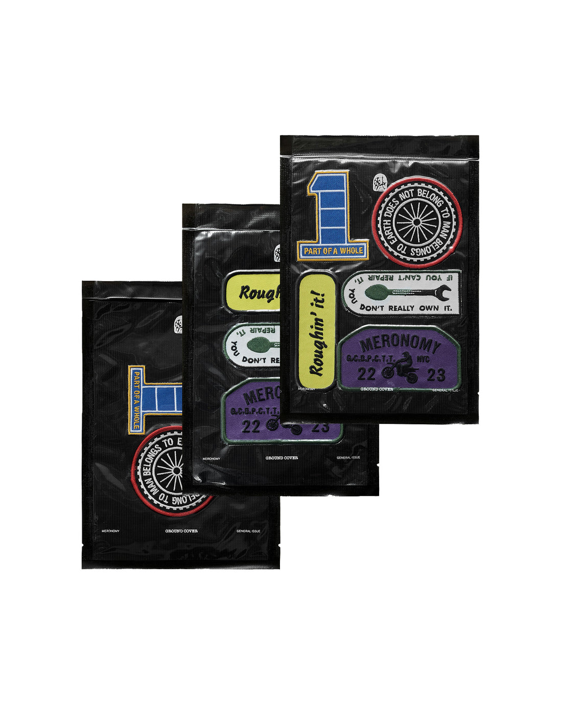 Available in packs of 2, 3, or 5, select which messages you resonate with most. Following an overarching motorsport aesthetic, details reference Meronomy, oddly endearing ecofacism, and American folk literature. Save money when you buy the full set. These patches are embroidered on twill with some die cut and some merrow stitched. 3" - 4". Sew on.