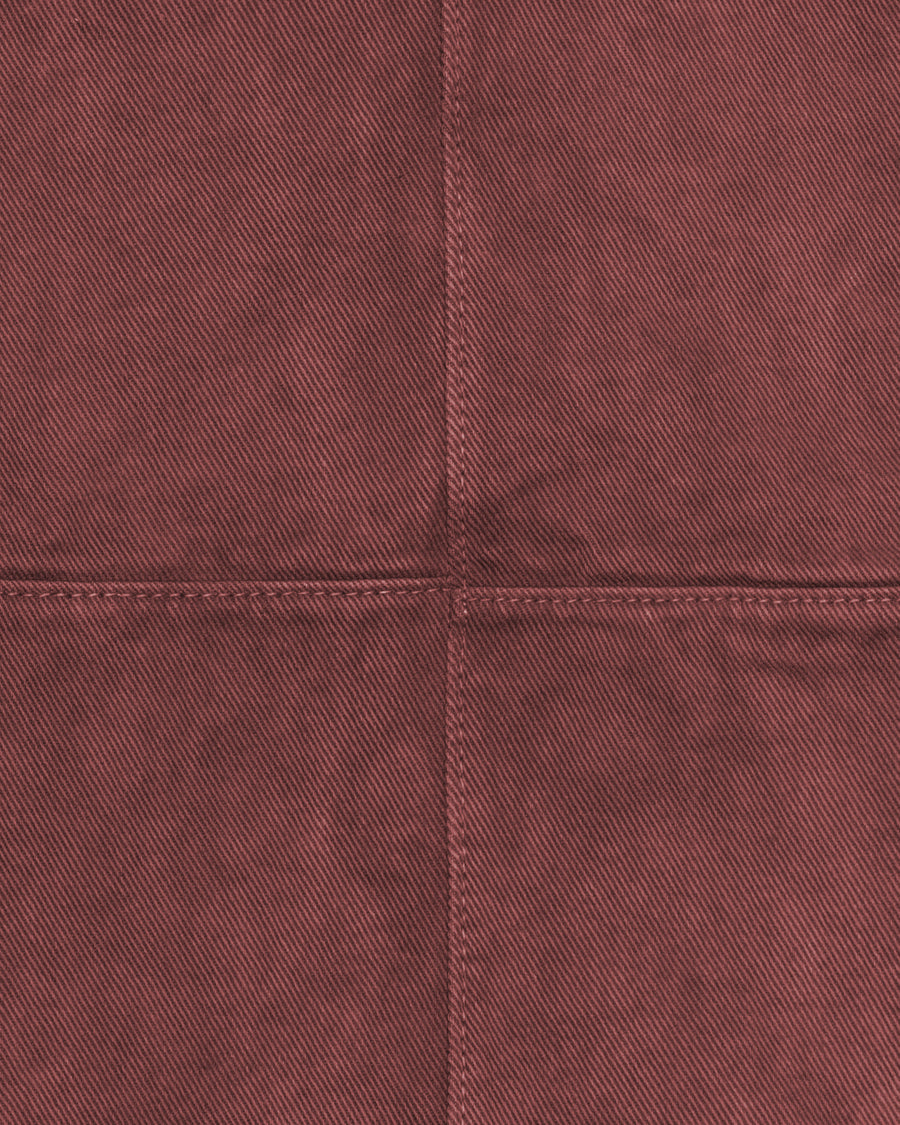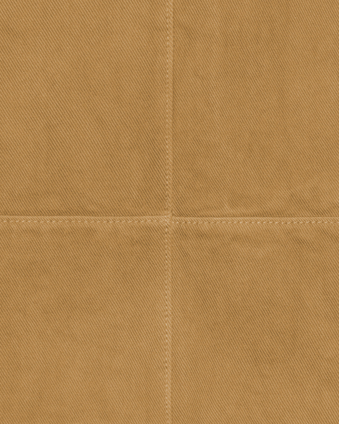 Heavyweight. Original size. Raw or dyed with plants. Earthy and textured color profile. 12.5 oz for increased durability and water repellency. Fabric milled in the US and sourced deadstock. US-grown organic cotton thread. Natural fibers and dyes. Peace for mind and body.